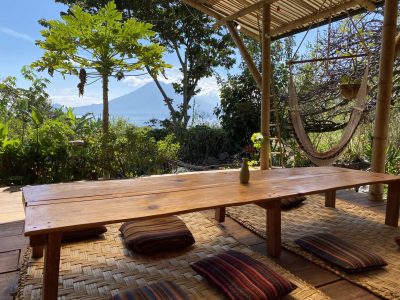 You are welcome to join us for a meal even if you’re not staying on the property! The price for a drop-in breakfast is 60Q, lunch / dinner is 80Q and includes a delicious meal and drinks – such as water (all day) tea & coffee (breakfast) or juice ( lunch only), herbal tea (dinner).