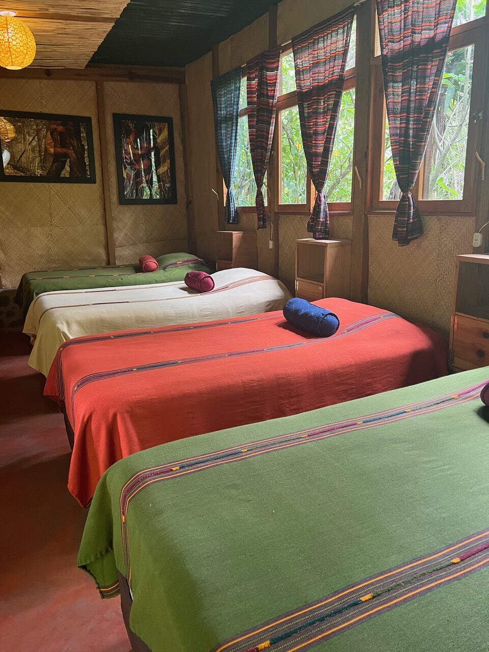 All of our accommodations are new construction and built with ecological practices in mind. Rustic and charming, rooms have either a jungle, mountains, or lake view; they are decorated with murals, local art and textiles.